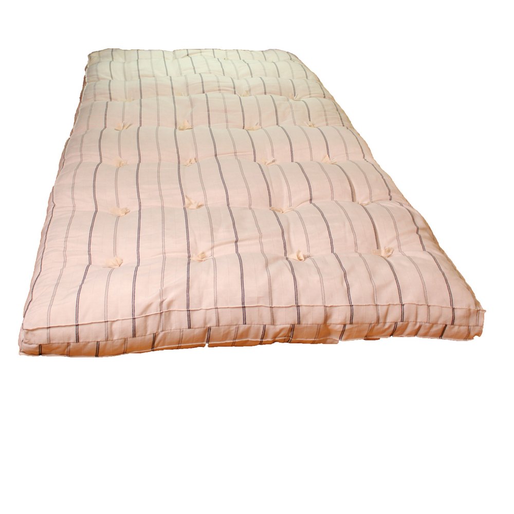 Чехол матраса выполнен из тика - 100% хлопка, что обеспечивает мягкость и комфорт при использовании. Наполнитель из белой ваты на 100% состоит из хлопка, что делает матрас гипоаллергенным и безопасным для здоровья.